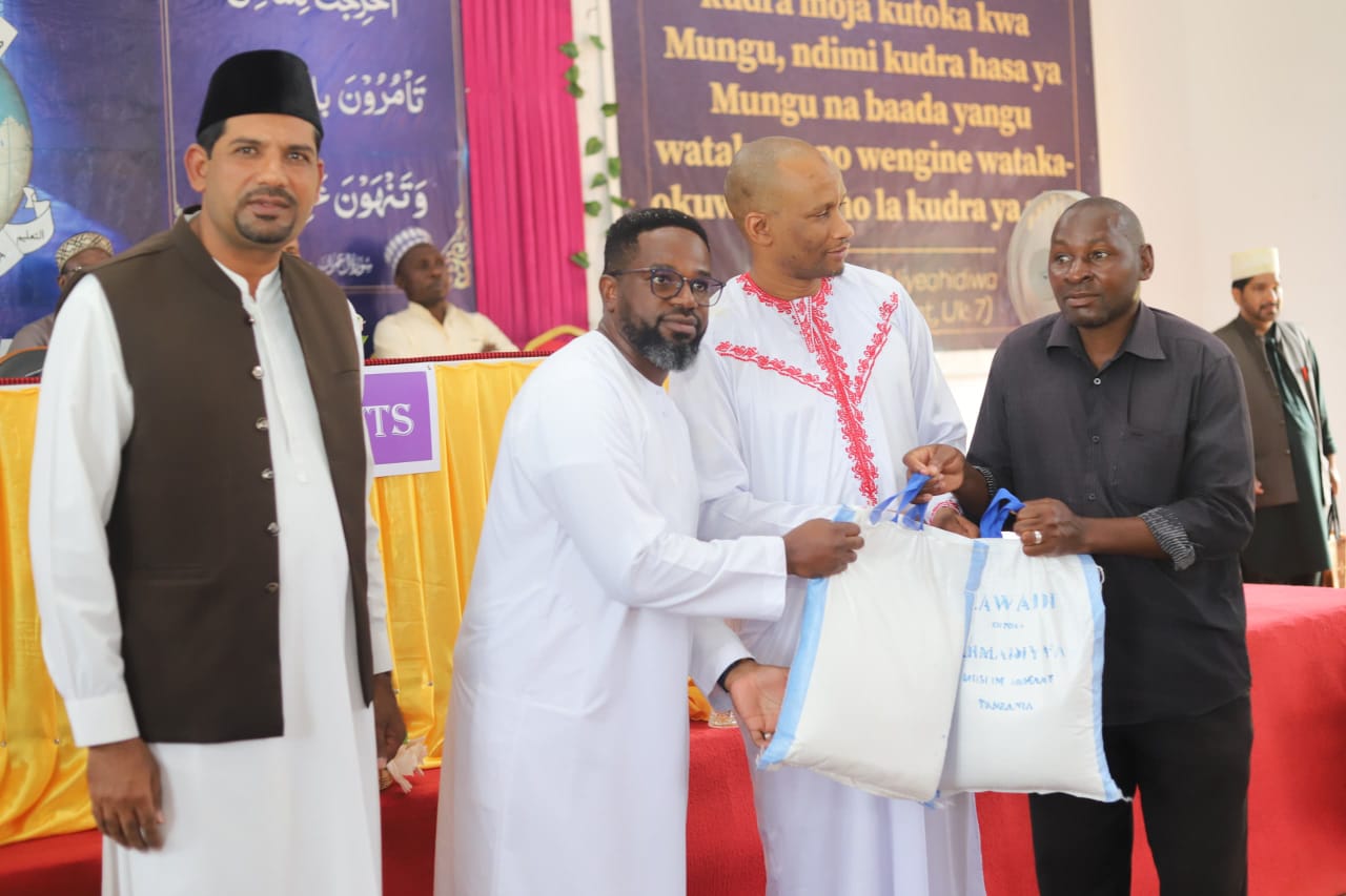 Naibu Amiri wa Jumuiya hiyo nchini , Sheikh Abid Mahmood Bhatti , amesema hayo wakati wa kugawa vyakula hivyo ambayo ni mchele na unga wa sembe kwa kaya kaya zenye uhitaji kutoka mitaa tisa ya kata hiyo.