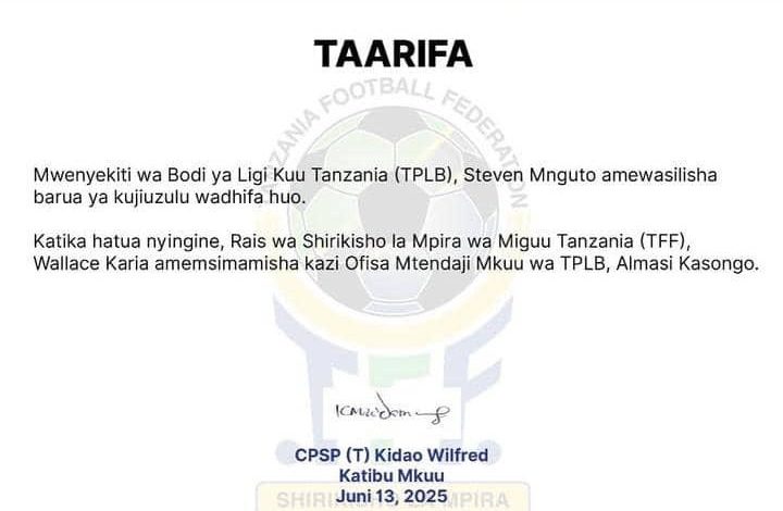 Soma Zaidi »DODOMA; MWENYEKITI wa Bodi ya Ligi Kuu nchini (TPLB), Steven Mnguto amejiuzulu wadhifa huo. Taarifa iliyotolewa na Katibu Mkuu wa…