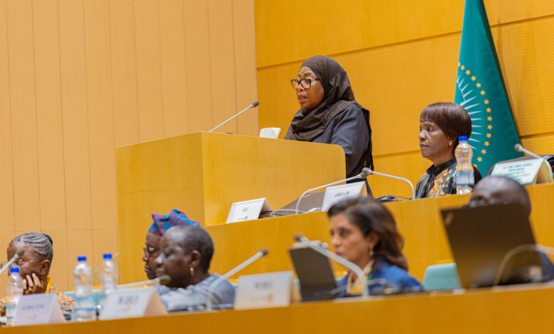 RAIS Samia Suluhu Hassan akizungumza na wanahabari juu ya ufadhili endelevu wa kutokomeza Malaria pembezoni mwa Mkutano wa Wakuu wa Nchi wa Umoja wa Afrika, leo Februari 14, 2026 jijini Addis Ababa, Ethiopia.